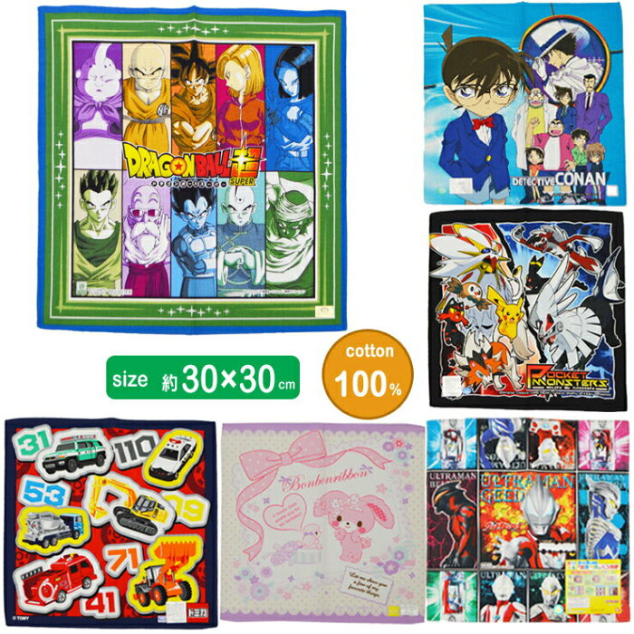 素材 綿100% サイズ 縦約30cm×横約30cm 特徴 子供に大人気!!バンダイのキャラクターハンカチ!お好きなキャラクターをお選びください。