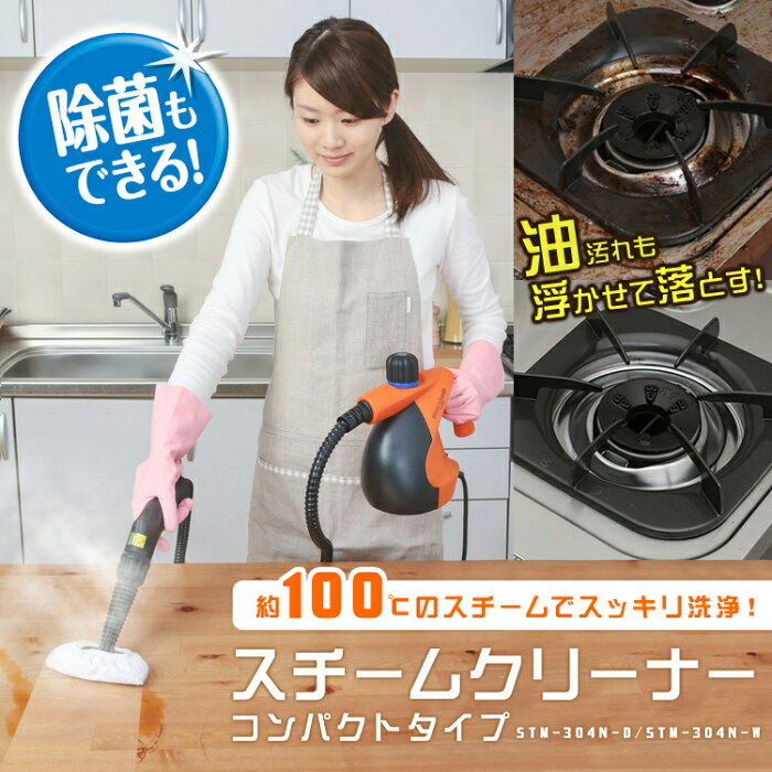 ・キッチンまわり・換気扇・電子レンジ・お風呂・窓のサッシ・トイレ 等に●商品サイズ(cm)幅約31×奥行約13×高さ約24●最大噴射圧力約3気圧●噴射待ち時間約5分●連続使用時間約12分●スチーム温度約100度●消費電力1000W●タンク容量約0.3L●ホース長さ1.2m●電源コード長さ2.0m●特徴・スポンジ研磨剤なし、シンクの水垢やタイルの汚れ等に・パッド研磨剤入り、グリルの焦げ付きや錆び等に・スクレーパー油汚れや焦げ、シール等のこびりつきに●カラーホワイト・オレンジ★