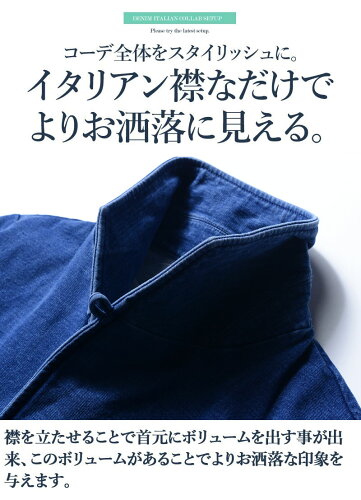 テーラードジャケットよりも堅く、そしてキレイに見えるイタリアンカラージャケットですがトレンドの素材であるデニムを組み合わせた事により、カジュアルな着こなしも可能となりました。
