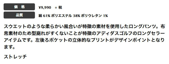 【FG】【30%OFF・セール・SALE】秋冬モデル アディダス ゴルフウェア INS78 スウエットライク パンツ [ストレッチ] (メンズ)